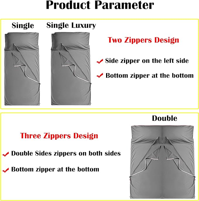 - Double-sided Usable Design - There's a almost full lenght zipper on the left side, so you can easily go to bed from the left side. But you can also use the sleeping bag in reverse when you need to go to bed from the right side.