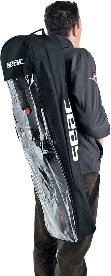 - The Seac Apnea long fin bag has a loop at the base to let excess water drain out