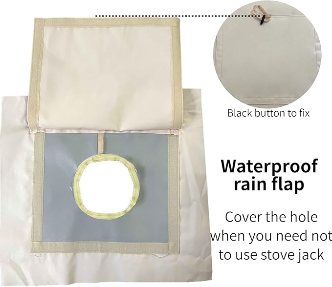 - WATERPROOF:Velcro design with rain flap closes securely. Durable and waterproof enough. Cover the hole when you do not want to use the stove. Note: This product is high temperature resistance but NOT fireproof. Always take caution when starting fires in the outdoors.