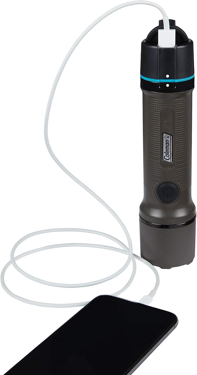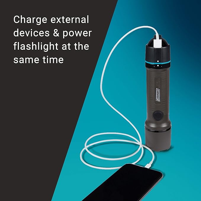 Coleman OneSource Rechargeable LED Flashlight, Water-Resistant Flashlight with OneSource Batteries Shines Up to 1000 Lumens, Rechargeable Heavy-Duty Flashlight for Camping, Emergencies, & Home Usage