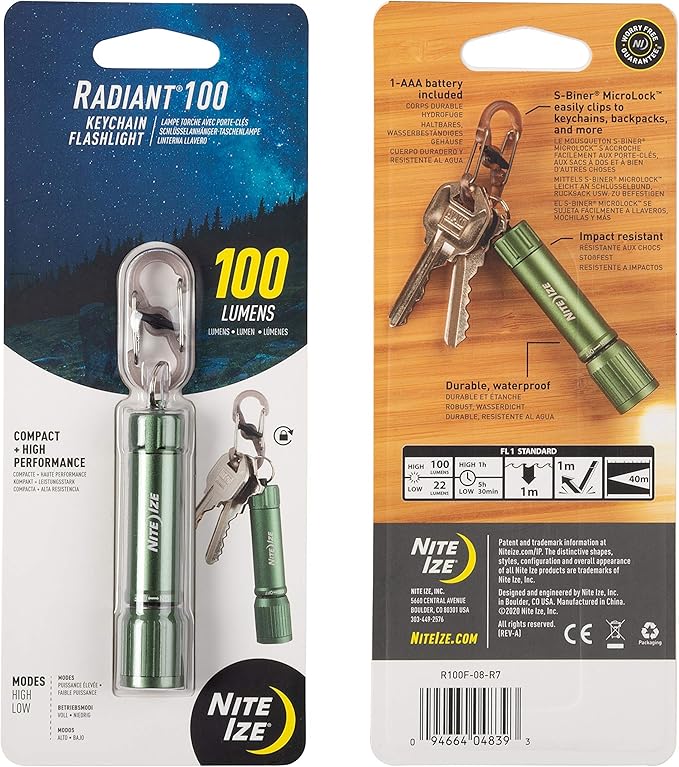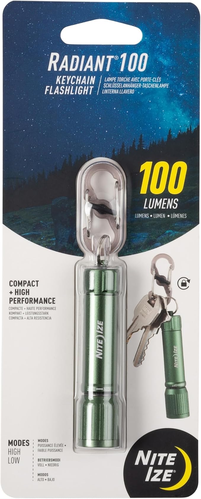 Nite Ize Radiant 100 Keychain Flashlight - Waterproof Mini Keychain Flashlight with Bright 100 Lumen Light - Waterproof Flashlight for Backpacks and Keys - Keychain Flashlight - Olive