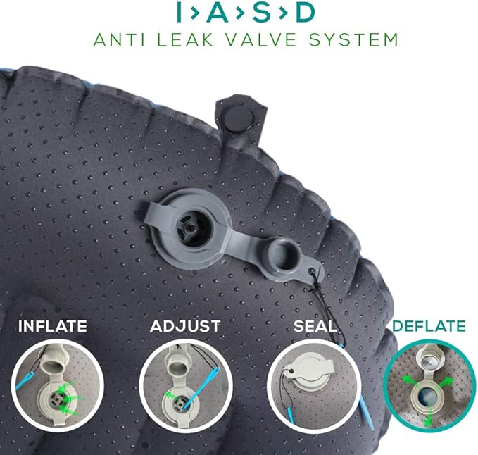 - 𝐄𝐚𝐬𝐲 𝐭𝐨 𝐮𝐬𝐞 - 𝐀𝐝𝐣𝐮𝐬𝐭𝐚𝐛𝐥𝐞 𝐏𝐫𝐞𝐬𝐬𝐮𝐫𝐞 : It takes a 2 good breaths to set up Inflate > Adjust > Seal > Deflate Hence the name I>A>S>D 4 Step Anti Leak Valve System , to store just fold in half 3 times and roll and store it in it’s carry pouch