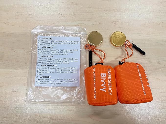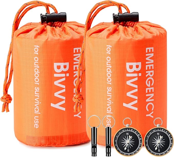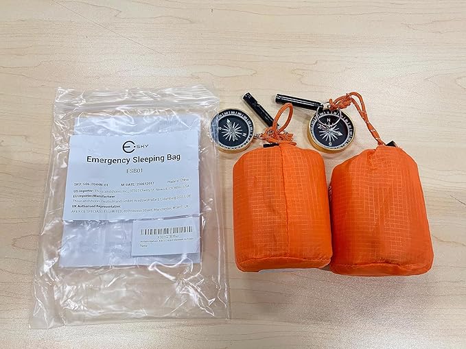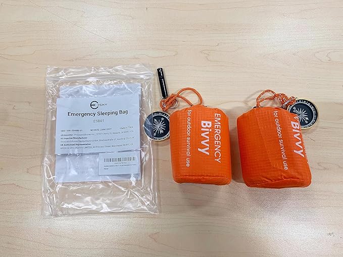 Esky Emergency Sleeping Bag, 2 Pack Portable Thermal Bivy Sack, Waterproof Lightweight Emergency Blanket Survival Gear with Compass and Whistle for Camping Hiking Outdoor Adventure