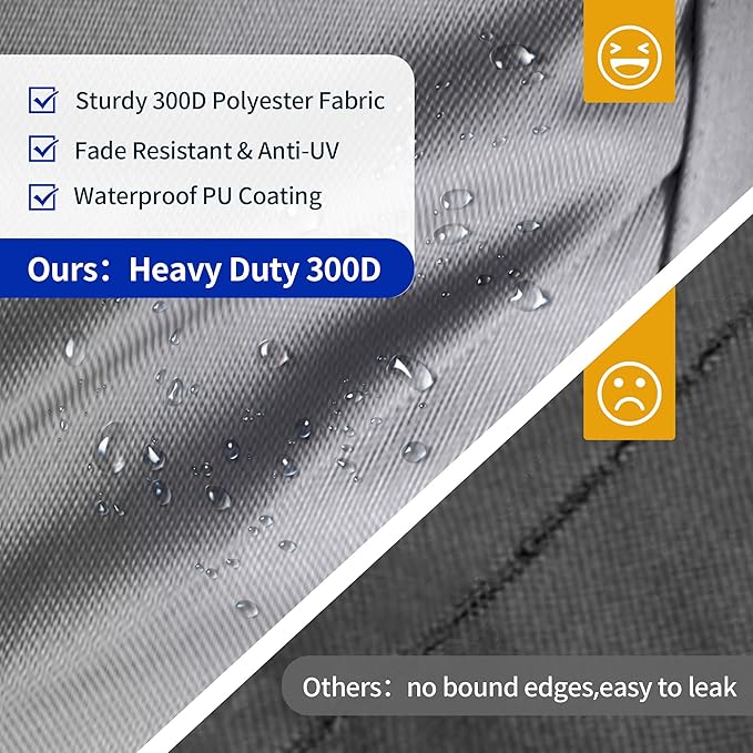 - 【Fully Waterproof Boat Cover】: Made of heavy duty marine grade 300D polyester with double PU coating, which can withstand up to 2000 Pa water pressure. Double stitched seams with straps reinforced to decrease water entering from the stitching - Never worry about the cover being easily torn and leak.