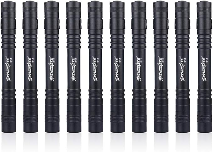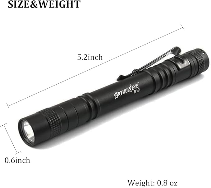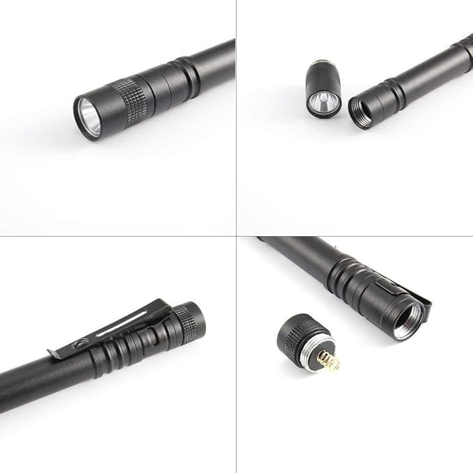 - Compact & Slim Size: The pen light slim & mini size fits into small tight spaces to light hard to see work areas. Comes with a clip, easy to carry out, it's a good choice for Inspection and repair. Note: led pen light flashlight is powered by 2 AAA batteries (Battery Not Included)
