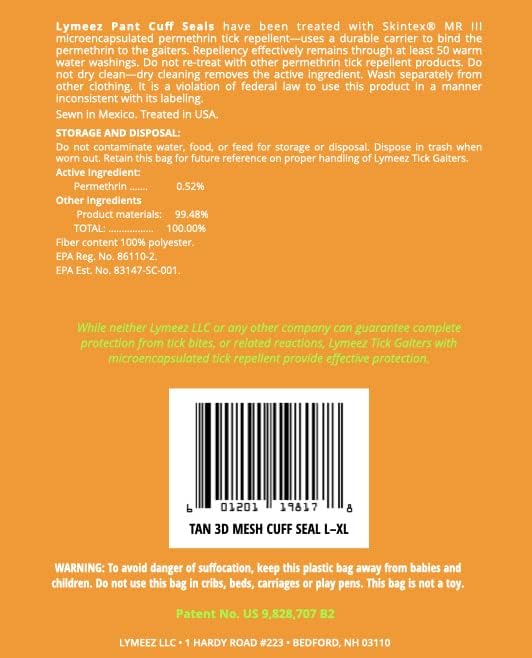 - TREATED IN USA with Pulcra Chemicals' Skintex MRIII microencapsulated permethrin tick repellent. Also effective on chiggers and mosquitoes. Repellency effectively remains for 50 washings. Sewn in Mexico. Active Ingredient: Permethrin 0.52%. While neither Lymeez LLC or any other company can guarantee complete protection from tick bites, or related reactions, Lymeez cuff wraps provide effective protection.