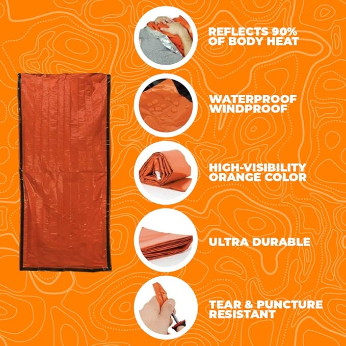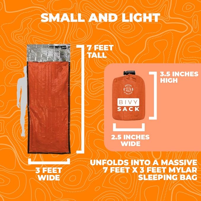 Survival Mylar Bivy Sack Portable Prepper Gear - Emergency Sleeping Bag Survival Bag - Lightweight Survival Sleeping Bags Double as Bivvy Thermal Survival Blanket for Bugout Bag Supplies