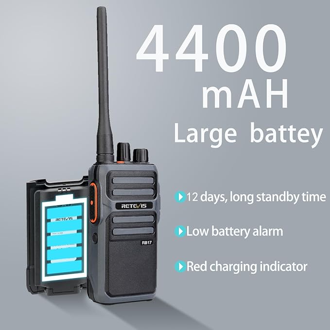 Retevis RB17 Walkie Talkie,Heavy Duty Walkie Talkies Long Range,Rechargeable 4400mAh Large Capacity,VOX Handsfree,Portable Two Way Radio for Hunting Skiing School Church Outdoor Gifts (2 Pack)