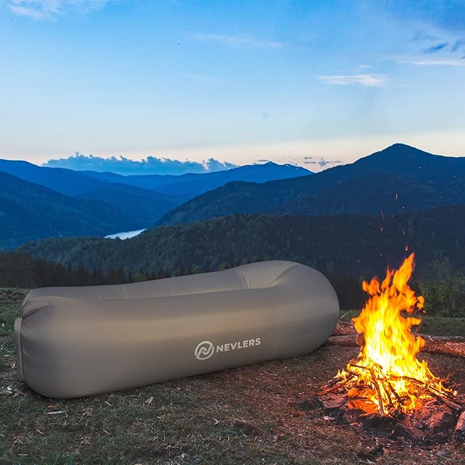- 🌞 Easy to Use - The Nevlers air chair inflatable does not require an air pump. Simply open up the outdoor lounger against the wind and whisk it through the air to fill. You may need to do this 3-4 times. Then roll the edges in , buckle and you're all set! Also included with the air lounger for camping is a peg to help keep the lounger in place. Once inflated, the blow up lounger can be used as inflatable chairs for outdoor movies , camping or the beach