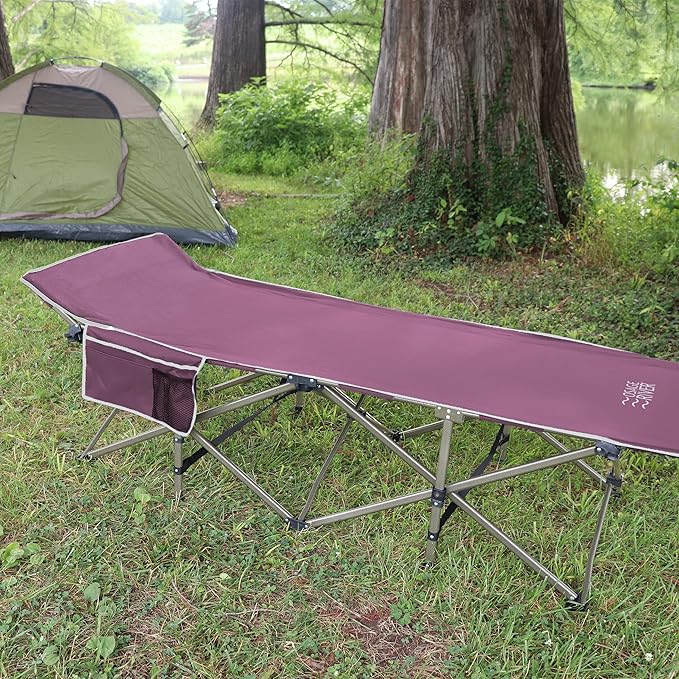 - EASY to SET UP and CARRY - Easy to use sleeping cots for adults; open by pressing down on the 4 frame joints to lock them in position; close by loosening the same joints while the cot is on its side and pulling the frame cords to fold the legs.