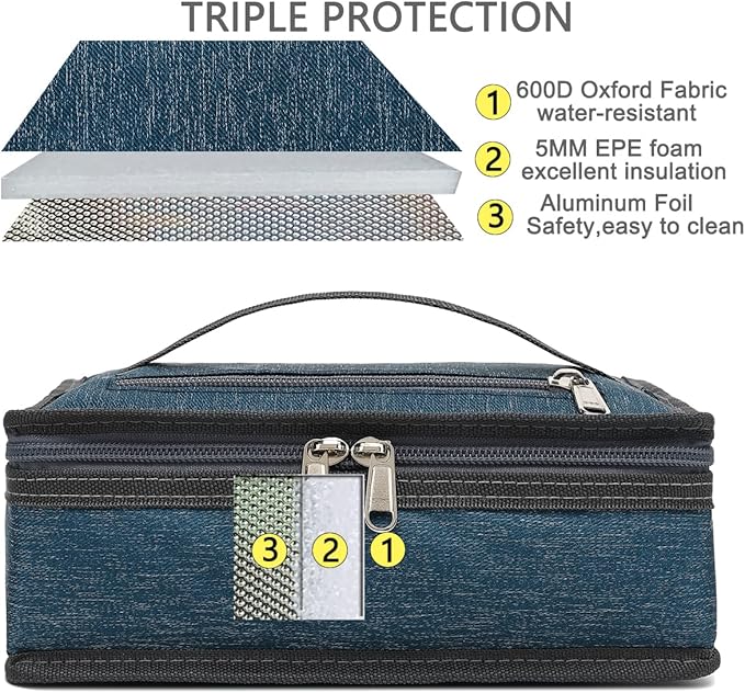 - ✿ Material:The FlowFly reusable Lunch Bag is made of the highly durable 600D Polyester,food grade aluminum foil inside, padded with extra thick 5mm PE foam and sturdy zippers.