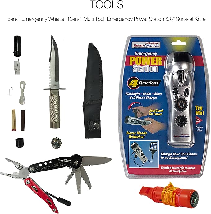 - EMERGENCY KIT FOR DISASTER PREPAREDNESS: Stay prepared for emergency situations everywhere you go. Ready America emergency survival kits sustain 1 people for 3 days (72 hours). Basic essential emergency supplies recommended by the American Red Cross as well as a hygiene kit, masks, thermometer, survival blankets and ponchos