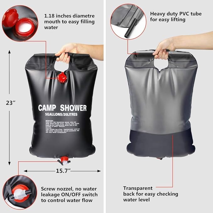 - High Water Capacity:this bath bag can carry up to 5 gallons water for showering outdoor,let you enjoy a better and refreshing shower anywhere.