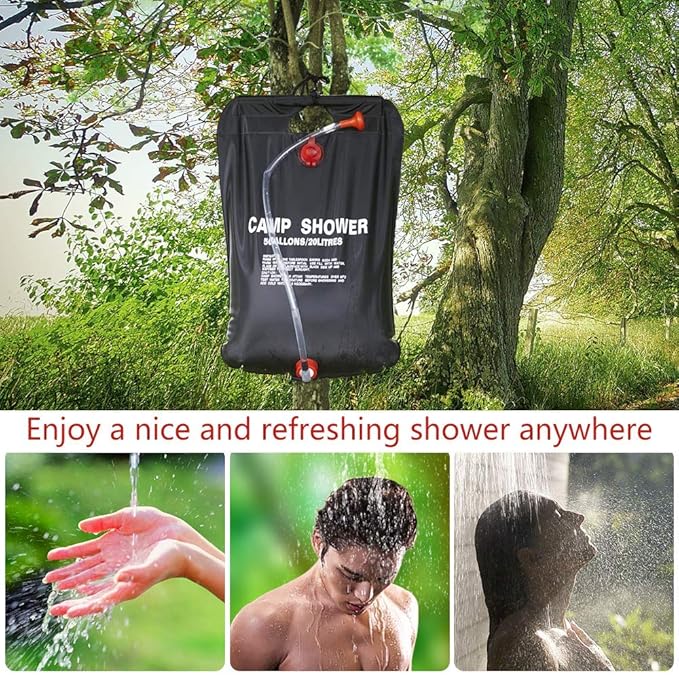 Solar Shower Bag for Camping,5 gallons/20L Solar Heating Shower Bag with Removable Hose and On-Off Switchable Shower Head,Camping Accessories for Camping Beach Swimming Outdoor
