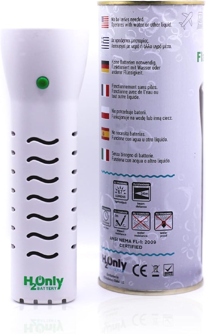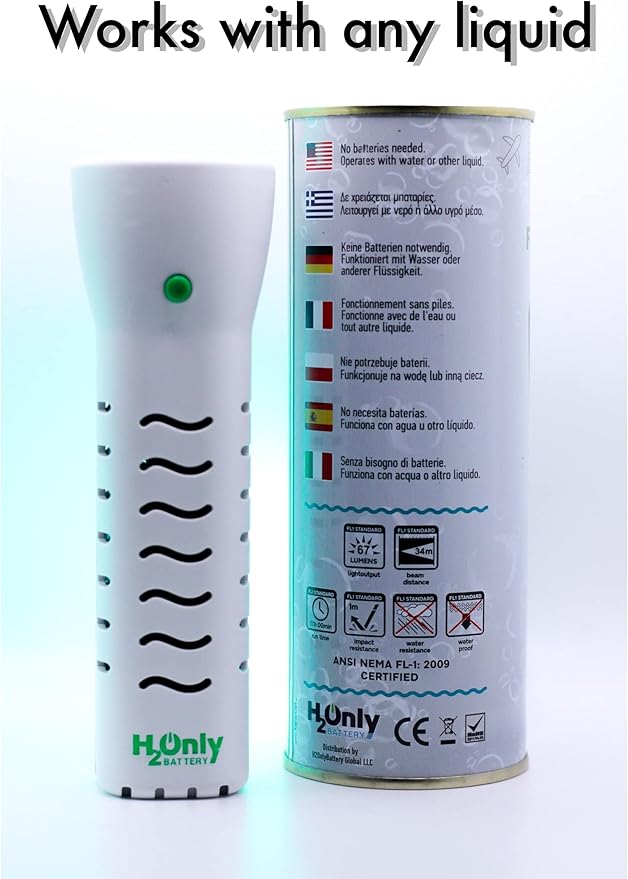 Flashlight - No Batteries Needed - Water Powered (or Any Liquid)- No Expiration Date - 67 Lumens, Emergency Light - Last up to 1500 Hours-White