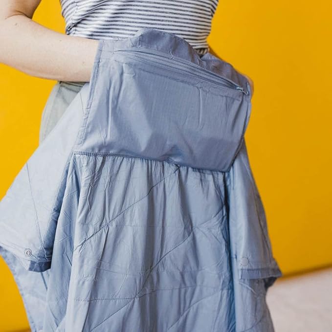 - A camping blanket that ensures you never fly without comfort again: Easily stow this lightweight packable blanket in your carry-on as an essential airplane blanket or a compact picnic blanket waterproof for spontaneous adventures. Neck snaps for hands-free napping enhance your comfort, making it the perfect travel companion