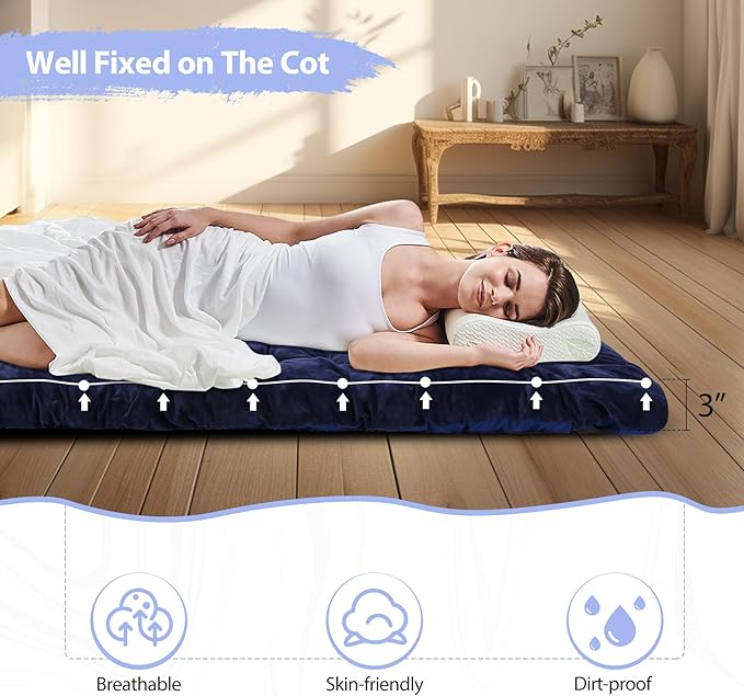 - Multipurpose Use: You can use the cot pad as a kids play mat or guest sleeping mat at home. It also perfect for camping, sleeping in the car and tent