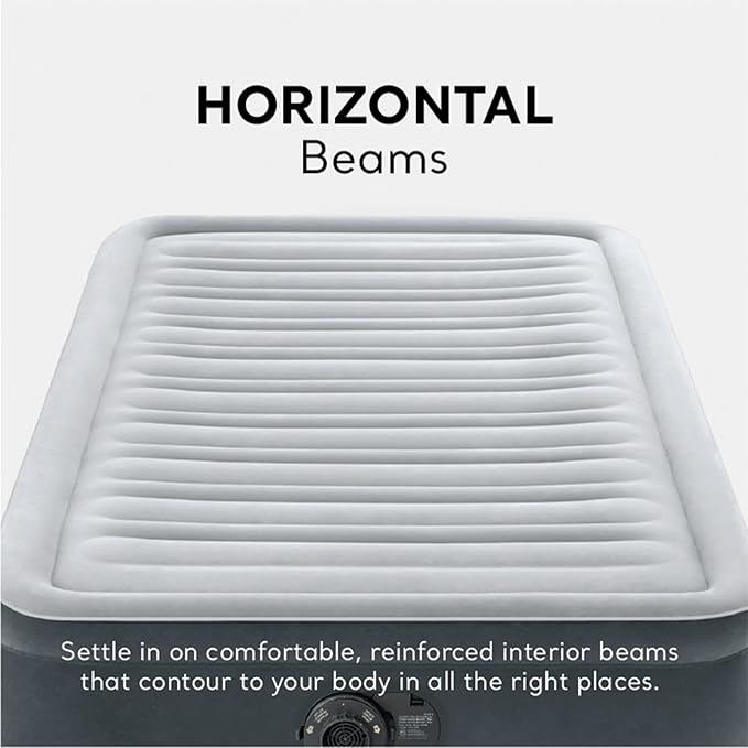 Intex 67765ED Dura-Beam Deluxe Comfort-Plush Mid-Rise Air Mattress : Fiber-Tech – Twin Size – Built-in Electric Pump – 13in Bed Height – 300lb Weight Capacity