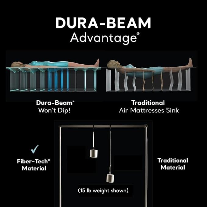 - UNIQUE EDGE CONSTRUCTION – Dura-Beam Air Mattresses are designed with a unique edge construction to withstand the weight of the sleeper without sagging and is 100% more durable, 35% more supportive and 15% lighter than a traditional airbed