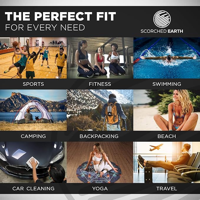 - ★ MULTIFUNTIONAL: The Scorched Earth Microfiber Towel’s compact size combined with its ability to absorb far more water and dry much faster than an ordinary towel makes it perfect for almost any use! Whether you are going for a quick swim at the beach, traveling with limited space for a bath towel, attending hot yoga, hitting the gym, running a marathon, or setting up camp after a long hike, our towel is multifunctional, durable, and reusable, allowing it to get the job done over and over again.
