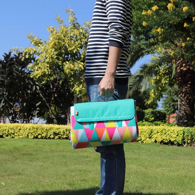 yodo Outdoor Picnic Blanket Water-Resistant for Camping Hiking Festivals, Colorful Triangle