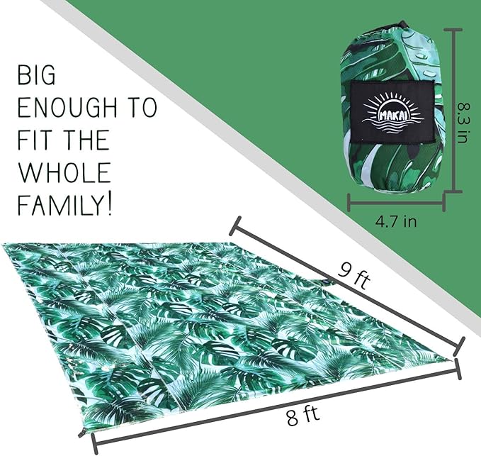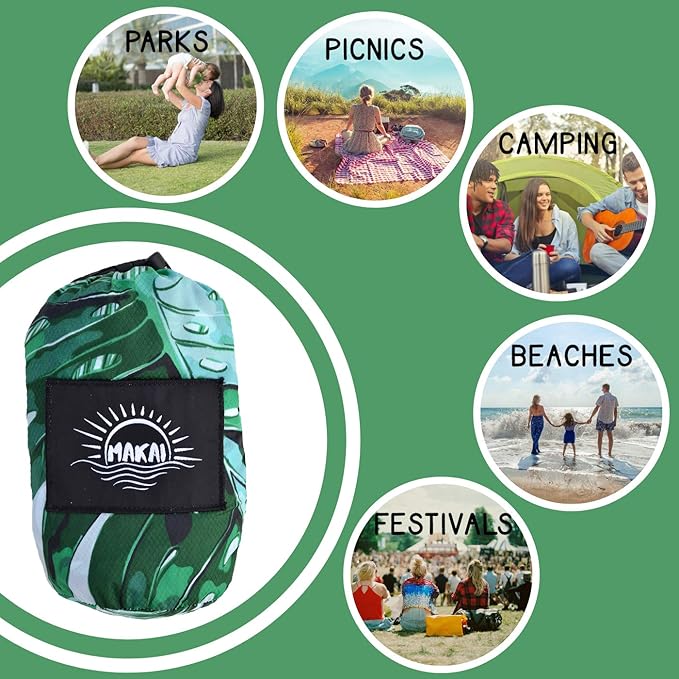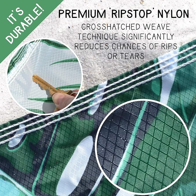 - Superior Quality MAKAI Beach Blanket: Crafted from premium 210T ripstop nylon, this sandproof beach blanket is ultra-durable, lightweight, and breathable. Unlike polyester, our material stays cool under the sun, ensuring a comfortable experience every time.