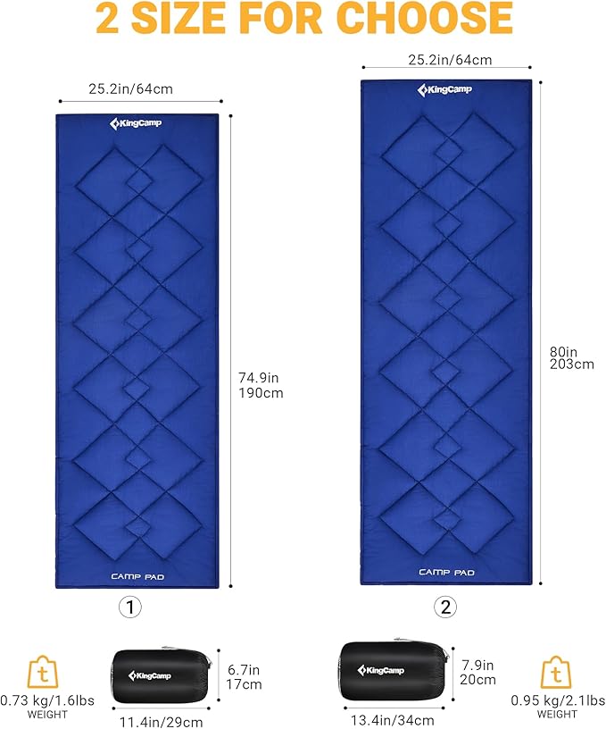 - LIGHTWEIGHT & COMPACT FOR EASY TRAVEL: Weighing only 2 lbs, this cot mattress pad is lightweight and easily compresses down to 13.39” x 7.87” x 7.87” for simple storage and portability. Take it with you on your next camping trip or road adventure—it’s the perfect travel companion with its included carry bag
