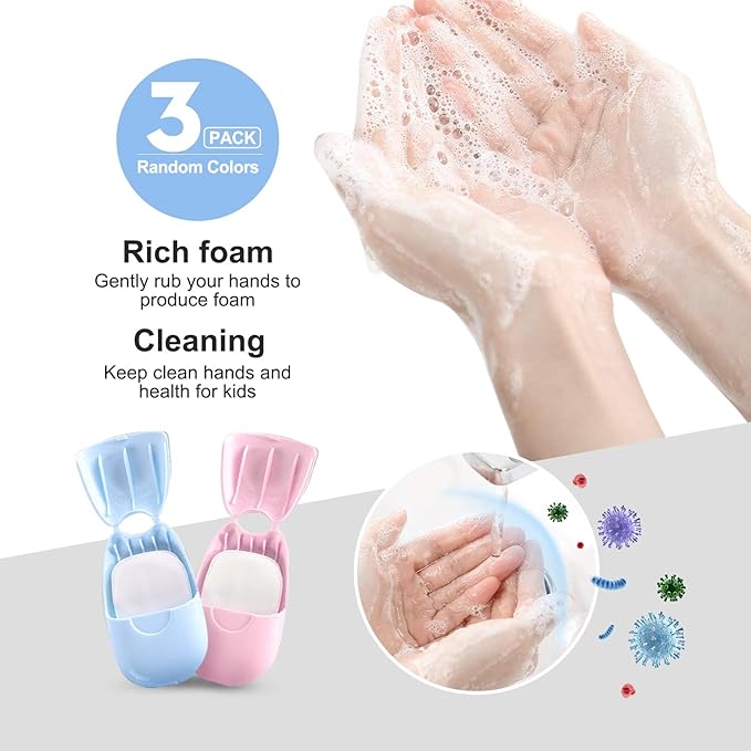 Portable Disposable Soap Sheets, Mini Portable Hand Washing Travel Hiking Washing Hand Bath Toiletry Paper Soap Sheets Bathing Soap (3 Boxes)