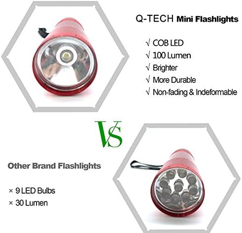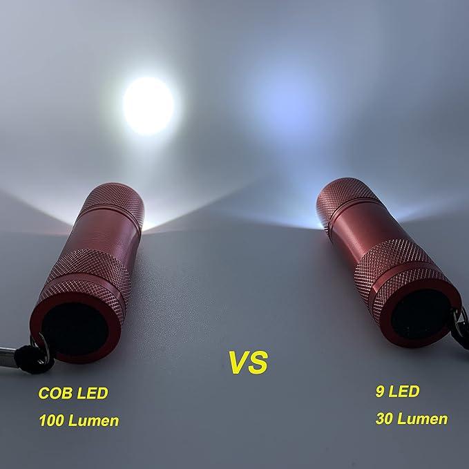 - SUPER BRIGHT: Each flashlight is equipped with 1 Super Bright COB LED, provides with 100 lumens of light output. Suitable for night walk, bedroom reading, camping, hiking, fishing, nursing, BBQ.