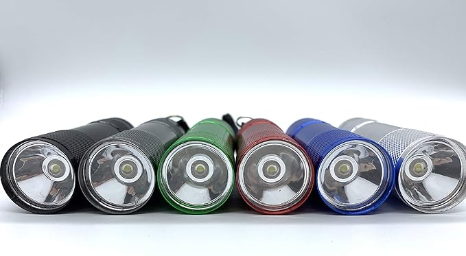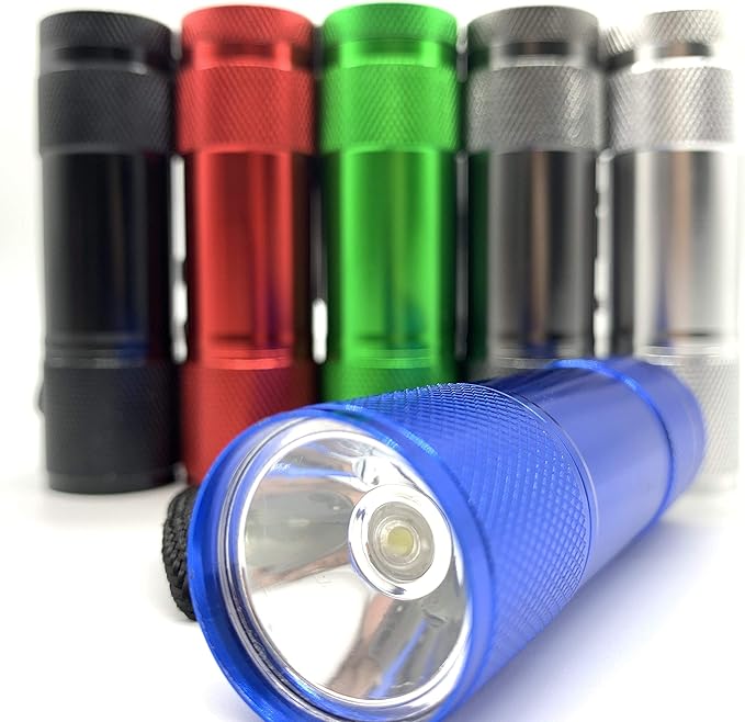 - Assorted Colors: Skid-proof grip with a lanyard for secure hold. Durable aluminium body. 6 assorted colors led flashlight: blue, red, silver, black, gray, green.