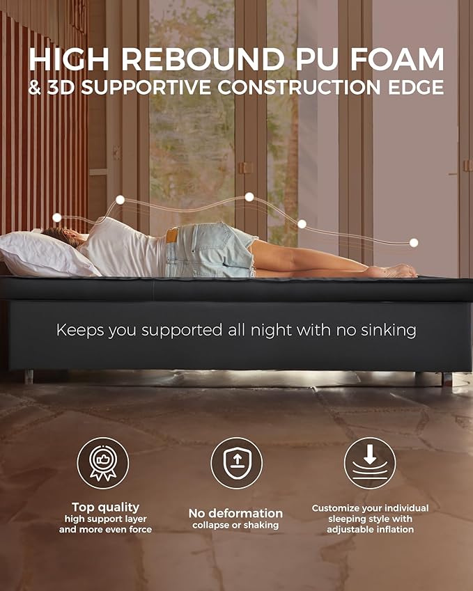 - ADJUSTABLE SOFTNESS & 3 INCH THICKNESS FOR COMFORT ON ANY SURFACE: With a 3" thickness, this sleeping pad ensures you won't feel any rocks or uneven ground underneath, providing ultimate comfort for a peaceful night's sleep. The pad’s adjustable softness allows you to customize your sleep experience based on your personal preference, making it suitable for various terrains.