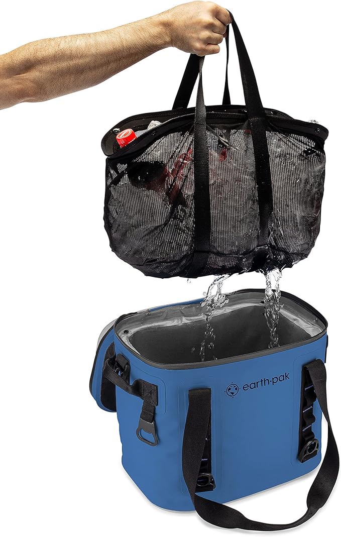Earth Pak Heavy Duty Waterproof 20-Can Soft Cooler Bag for Camping, Kayaking, Beach Trips - Mesh Bag Insert Included