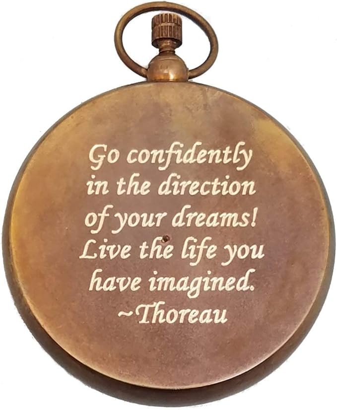 - BACK OF COMPASS ENGRAVED: Go confidently in the direction of your dreams! Live the life you have imagined. ~Thoreau
