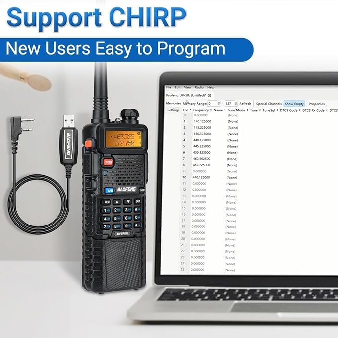 - Support CHIRP and Keypad Programming:The UV-5R walkie-talkie can directly program the frequency manually, also work fine with CHIRP;