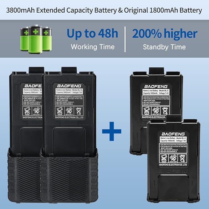 Baofeng UV-5R Ham Radio Long Range UV5R Handheld Dual Band 3800mAh High Power Two Way Radio Rechargeable Walkie Talkies for Adults with Earpiece,USB Charging Cable and Programming Cable Full Kit,2Pack