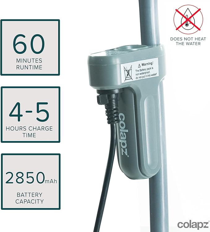 - Add additional shower time for you and the family with this spare battery for the Colapz portable camping shower.