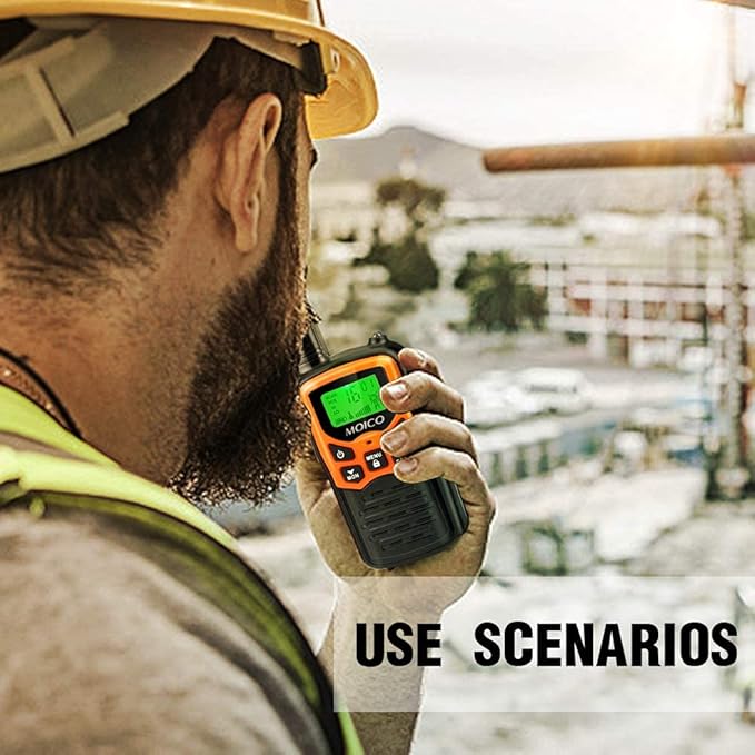 - Back-lit LCD Screen and LED flashlight: This walkie talkies has bold green back-lit LCD screen provides high visibility in night. Built-in LED torch can be used as both flash and emergency light.Small size and light weight, Hard and durable shell, drop-proof.MOICO walkie talkie let you and your family enjoy games or outdoor adventures.