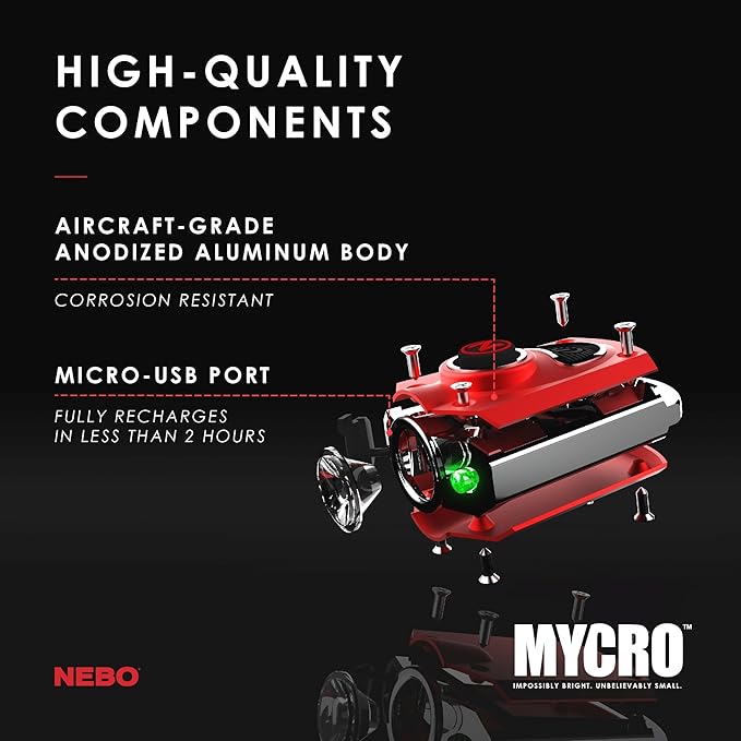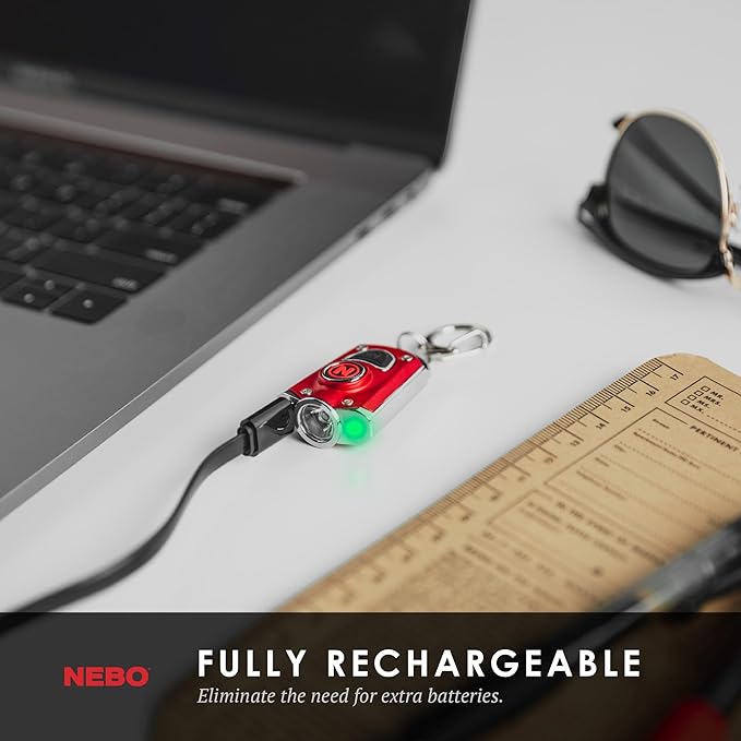 NEBO MYCRO USB Rechargeable LED Keychain Light, Tactical Keyring Flashlight Features 6 Light Modes High Lumens –Red
