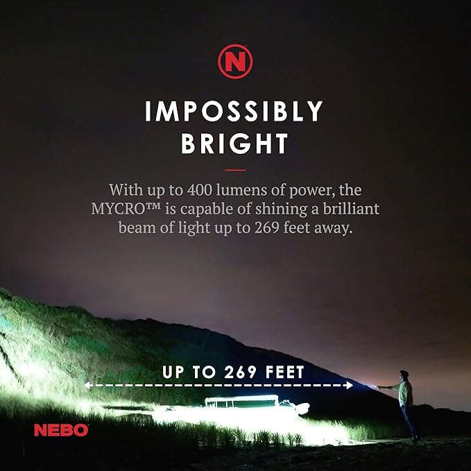 - 6 Light Modes: Turbo (400 lumens), High (150 lumens), Medium (50 lumens), Low (15 lumens), Green, Red