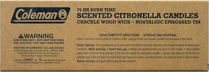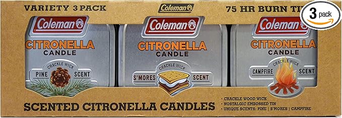 - One 3 count package of Coleman Scented Tin Citronella Candle