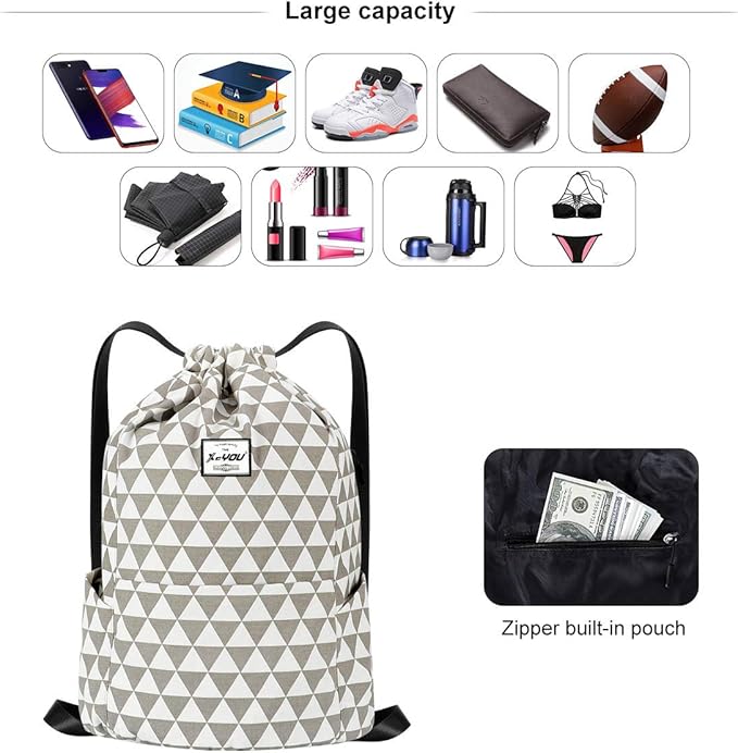 • Lightweight and Waterproof - This drawstring bag is lightweight and easy to carry. The fabric is waterproof and all the things inside are protected very well. It is a great cinch sack bag for swimming, cycling, gym, yoga and your day trips.