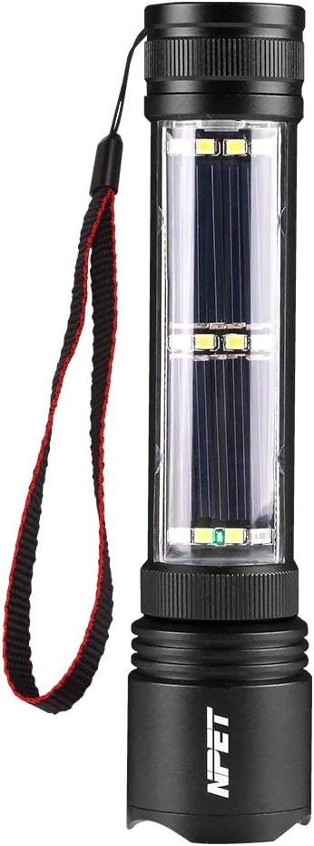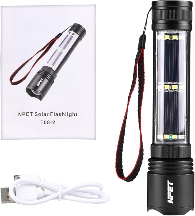 NPET T08-2 Solar Power Flashlight Car Flashlight USB Rechargeable Tactical Multi-Function Torch Emergency Tool