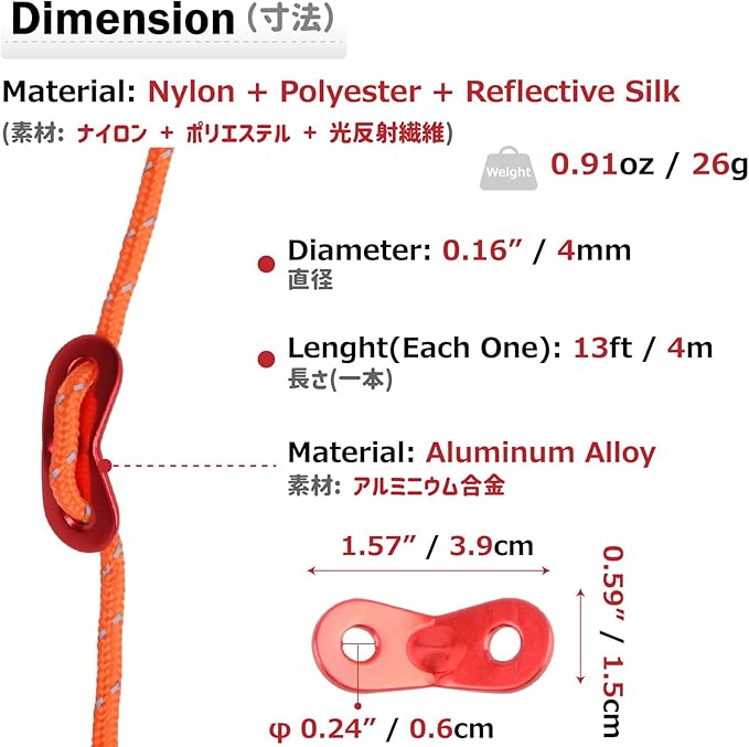 - 🌱 PACKAGE CONTENT: 12 x 13.12ft(4m) guylines with adjuster, 2 x pouches