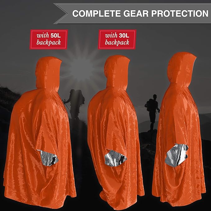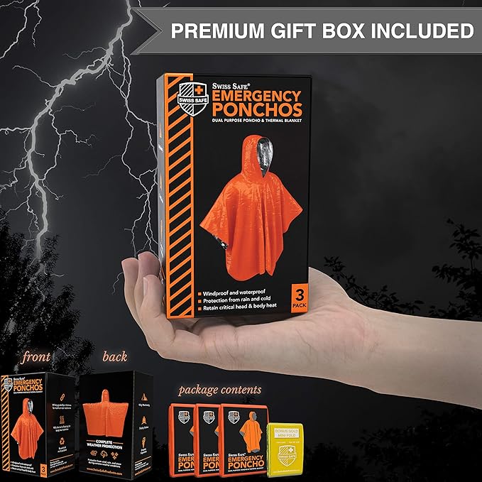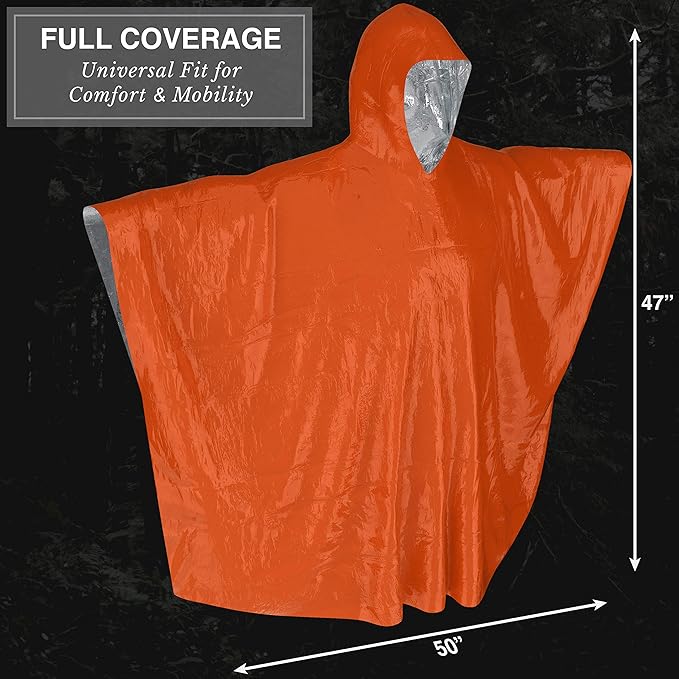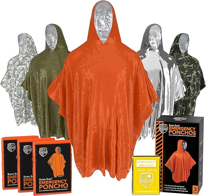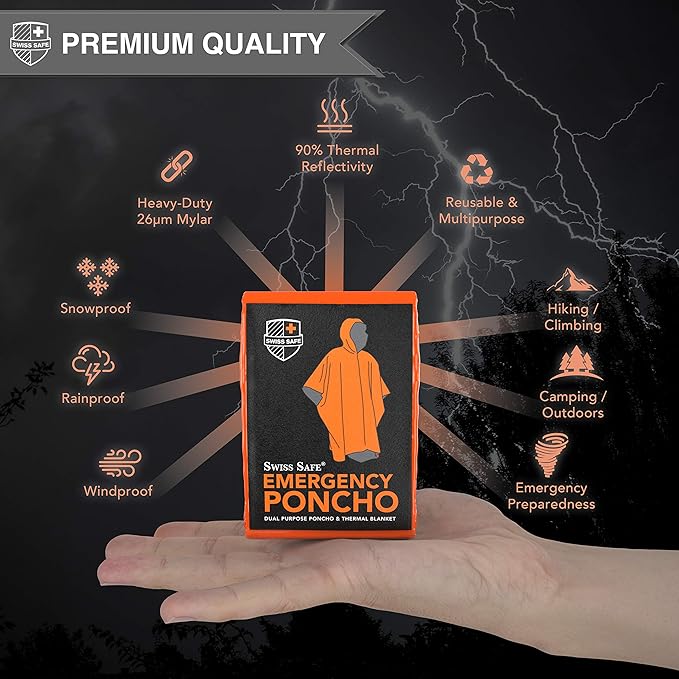Swiss Safe Emergency Rain Ponchos, Reusable Mylar Poncho for Men, Women, Kids, Adults