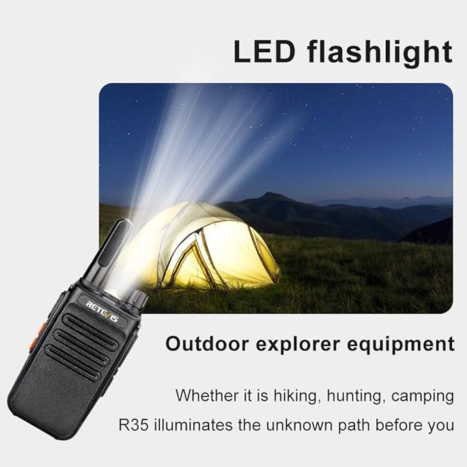 Retevis RB35 Walkie Talkie 6 Pack, Small and Lightweight Two Way Radios Rechargeable, Flashlight, Hands Free, Handheld Portable 2 Way Radio for Staff Grocery Stores Travel Gift Skiing Event