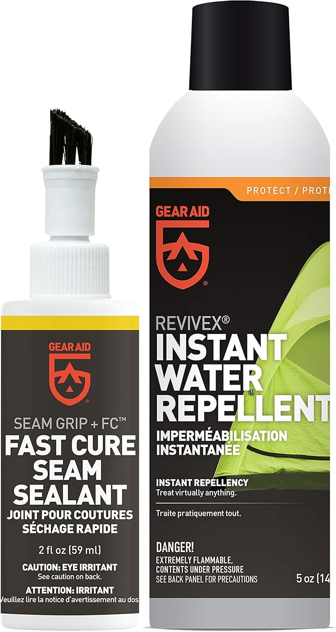 - Stop leaks in your rainfly, tent seams/floor with a GEAR AID Tent Waterproofing Kit; all kits include Revivex Instant Water Repellent, a breathable, silicone-free formula