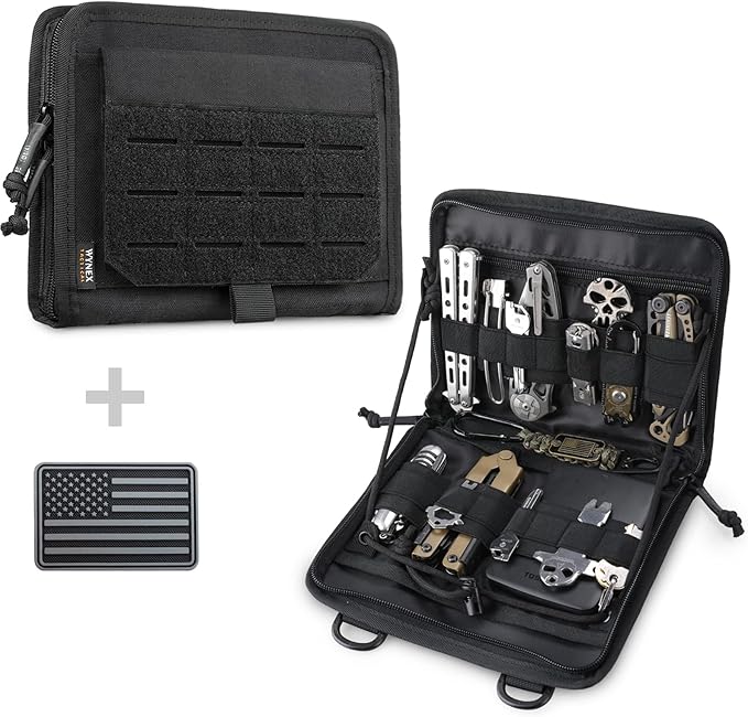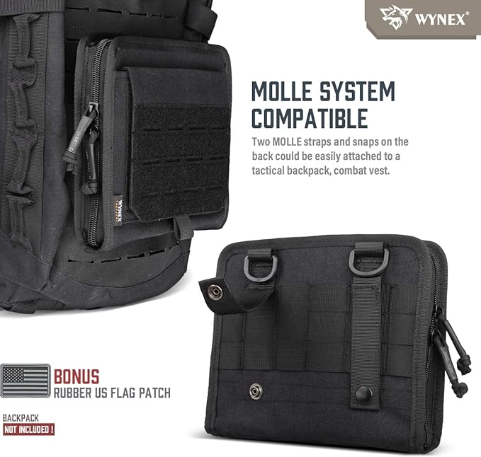 WYNEX Tactical Folding Admin Pouch, Molle Tool Bag of Laser-Cut Design, Utility Organizer EDC Medical Bag Modular Pouches Tactical Attachment Waist Pouch Include U.S Patch
