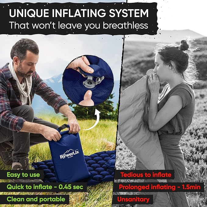 - REJUVENATE YOUR BODY: Powerlix camping pad has revolutionary hexagon design made with body mapping technology. The hexagon air cells ergonomically support all of your pressure points, giving you superior support and comfort all night long, no matter how you sleep! The sleeping mat is also a camping gear must haves luxury, being comfortable yet lightweight. It rolls up small, making it effortless to carry around. The cot comes in a variety of color choices, sure to match anyone's personality.