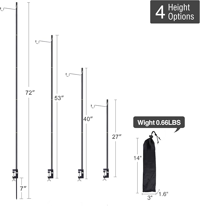 - 【Easy to Carry】 Folded Size: L3”xW1.6”xH14”. Weighs only 0.66LBS. With its compact size and light weight, the lantern stand outdoor can be taken to anywhere you want. Perfect for outdoor picnic, camping, hiking, beach, park grass lawn and fishing.