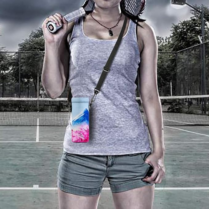 Water Bottle Sling Case Bag Carrier Holder - 500ML 750ML 1000ML Neoprene Water Bottle Sleeve Cooler Cover Pouch with Adjustable Shoulder Strap for Men Women Travel Camping Walking Hiking Running